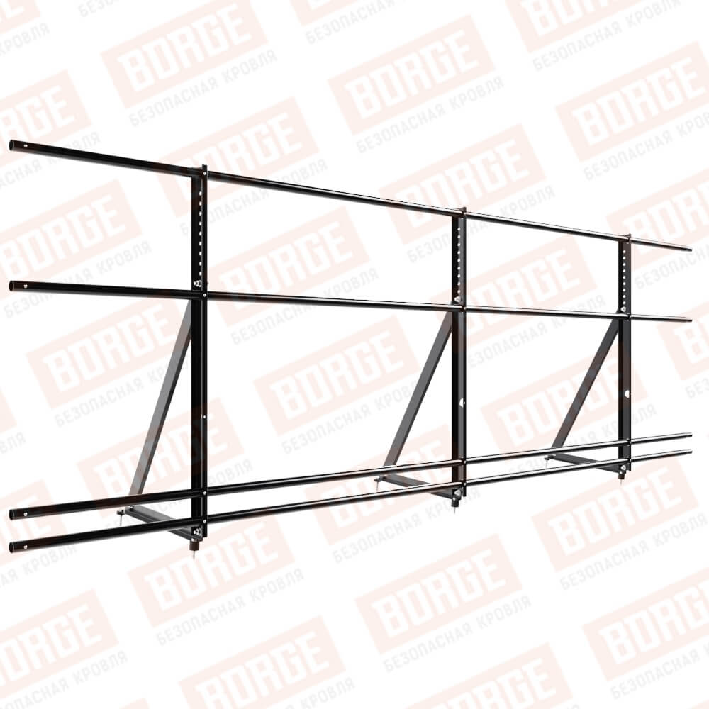 Ограждение кровельное Русский Рубеж H-90см, 3м, с двумя доп. трубами, для кровли из металлочерепицы, профнастила, материалов на основе битума, чёрный (RAL 9005)