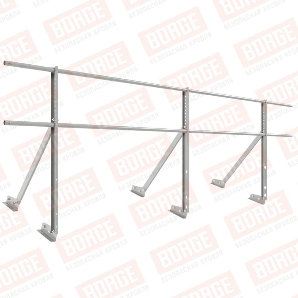 Ограждение кровельное Русский Рубеж H-90см, 3м, для фальцевой кровли, бело-алюминиевый (RAL 9006)