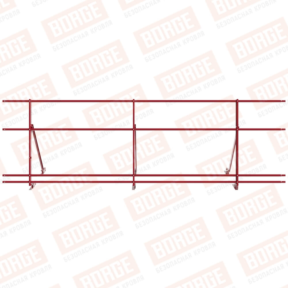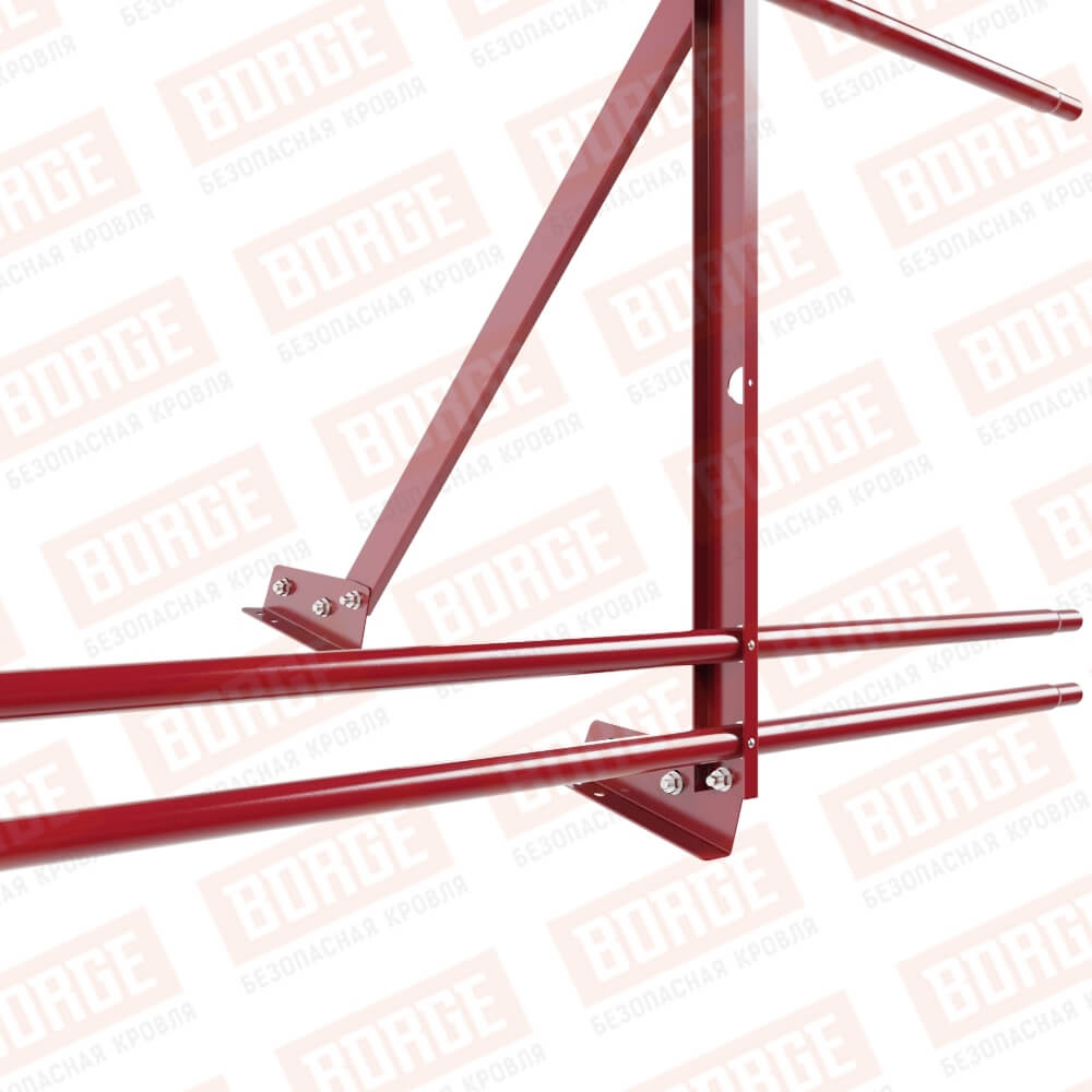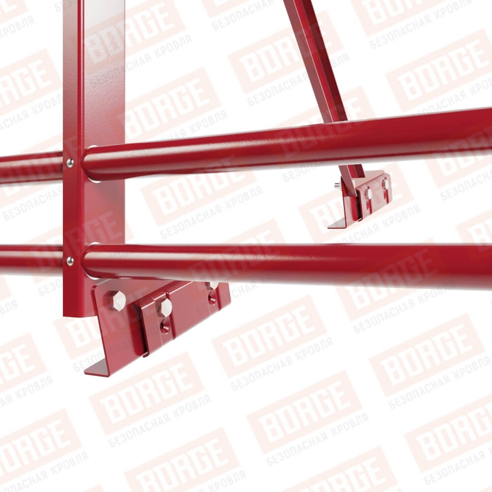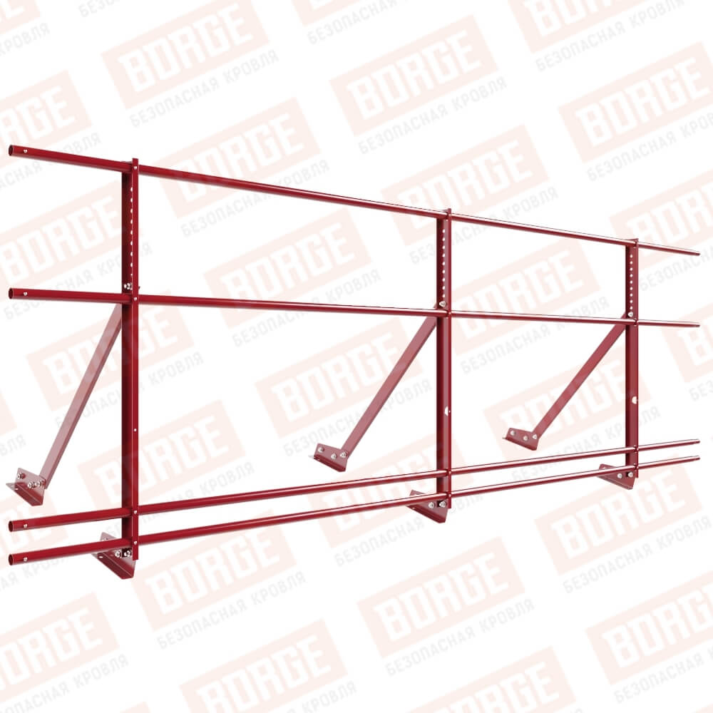 Ограждение кровельное Русский Рубеж H-90см, 3м, с двумя доп. трубами, для фальцевой кровли, рубиново-красный (RAL 3003)