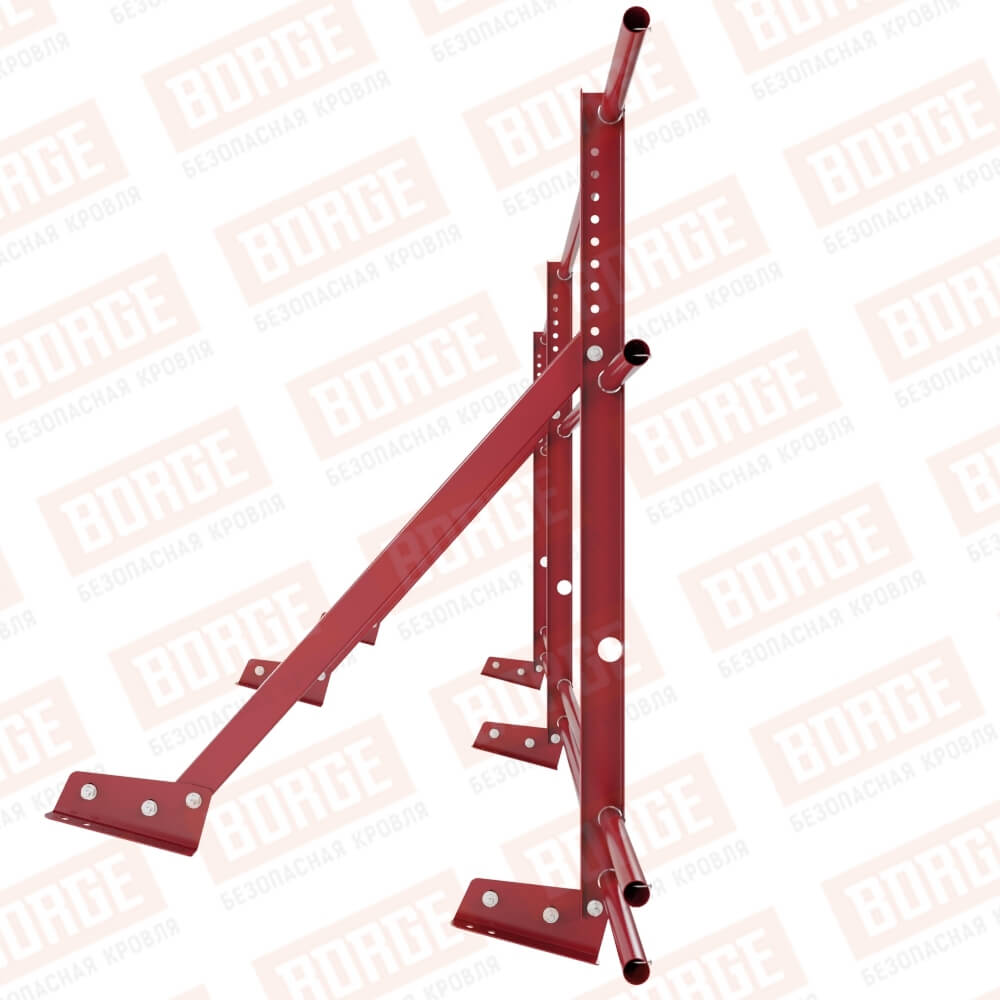 Ограждение кровельное Русский Рубеж H-90см, 3м, для фальцевой кровли, рубиново-красный (RAL 3003), с двумя доп. трубами