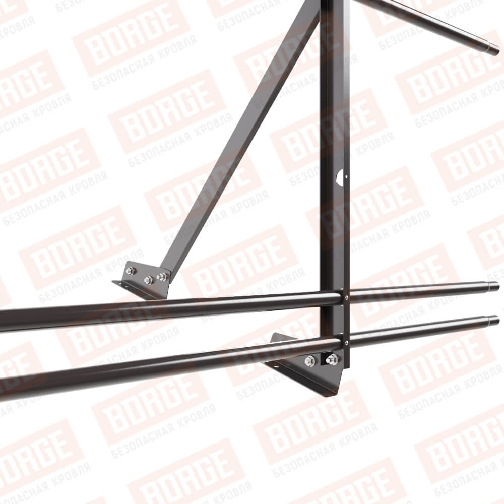 Ограждение кровельное Русский Рубеж H-90см, 3м, с двумя доп. трубами, для фальцевой кровли, серо-коричневый (RR 32)