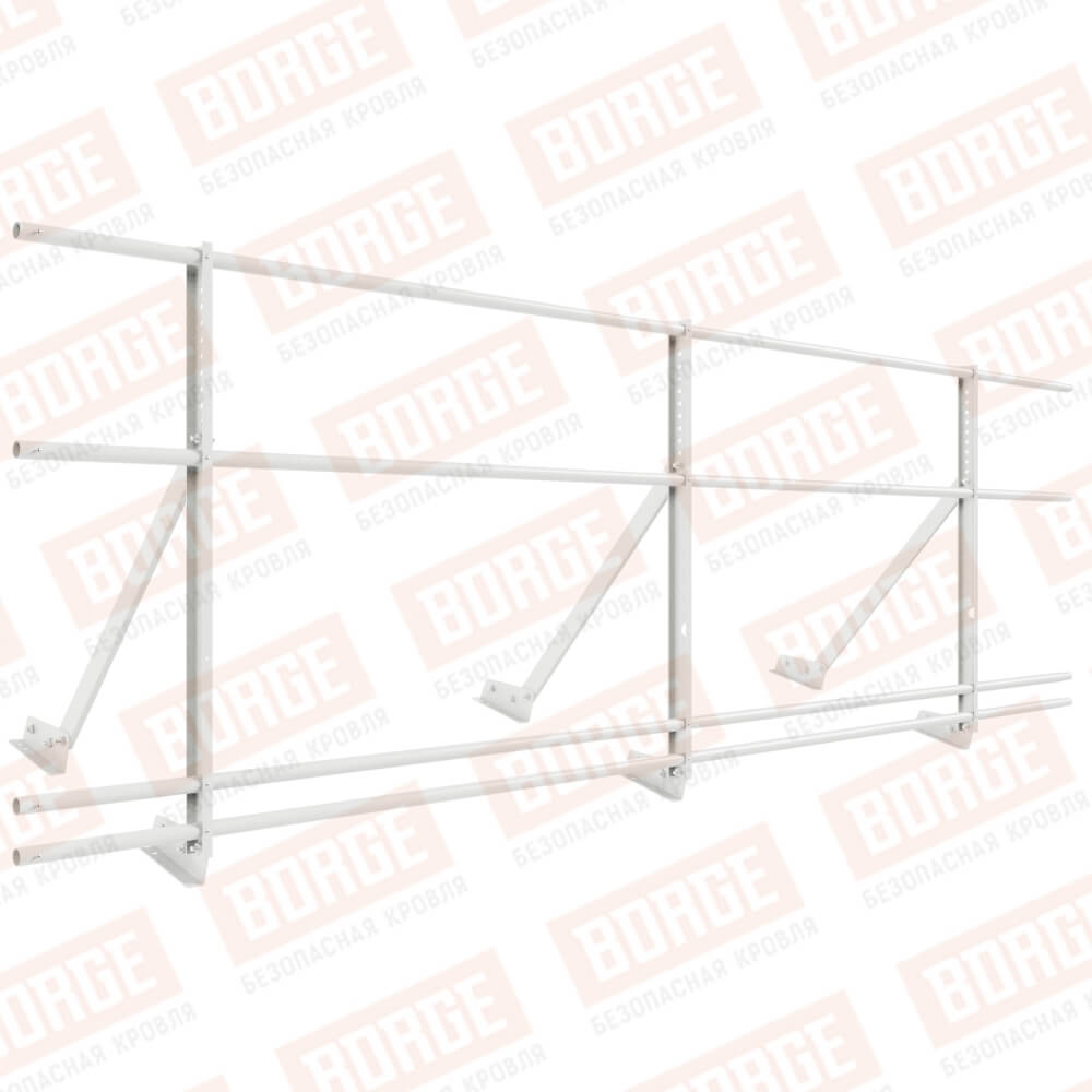 Ограждение кровельное Русский Рубеж H-90см, 3м, с двумя доп. трубами, для фальцевой кровли, сигнально-белый (RAL 9003)