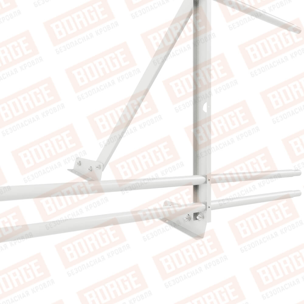 Ограждение кровельное Русский Рубеж H-90см, 3м, для фальцевой кровли, сигнально-белый (RAL 9003), с двумя доп. трубами