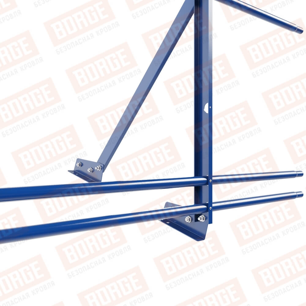 Ограждение кровельное Русский Рубеж H-90см, 3м, для фальцевой кровли, сигнально-синий (RAL 5005), с двумя доп. трубами