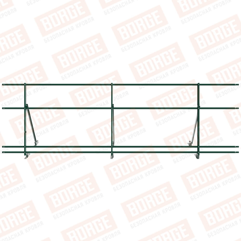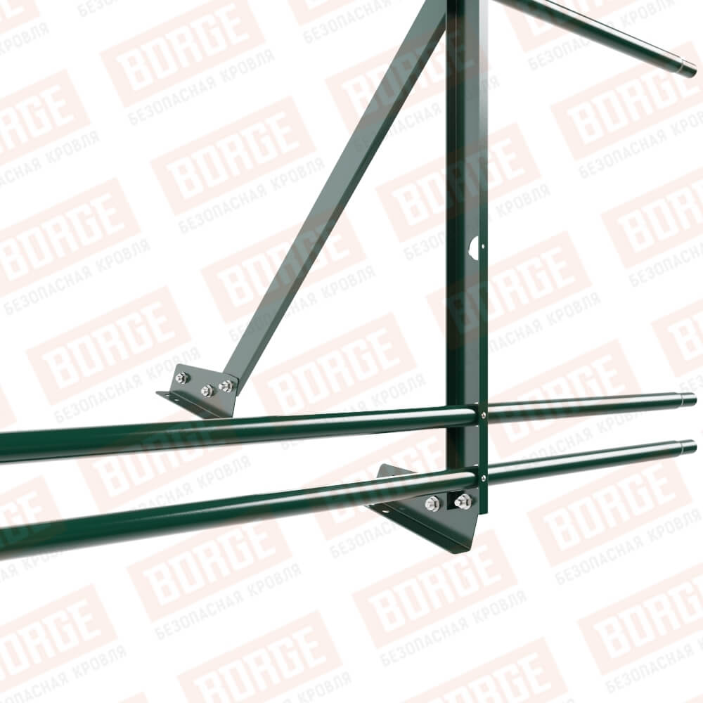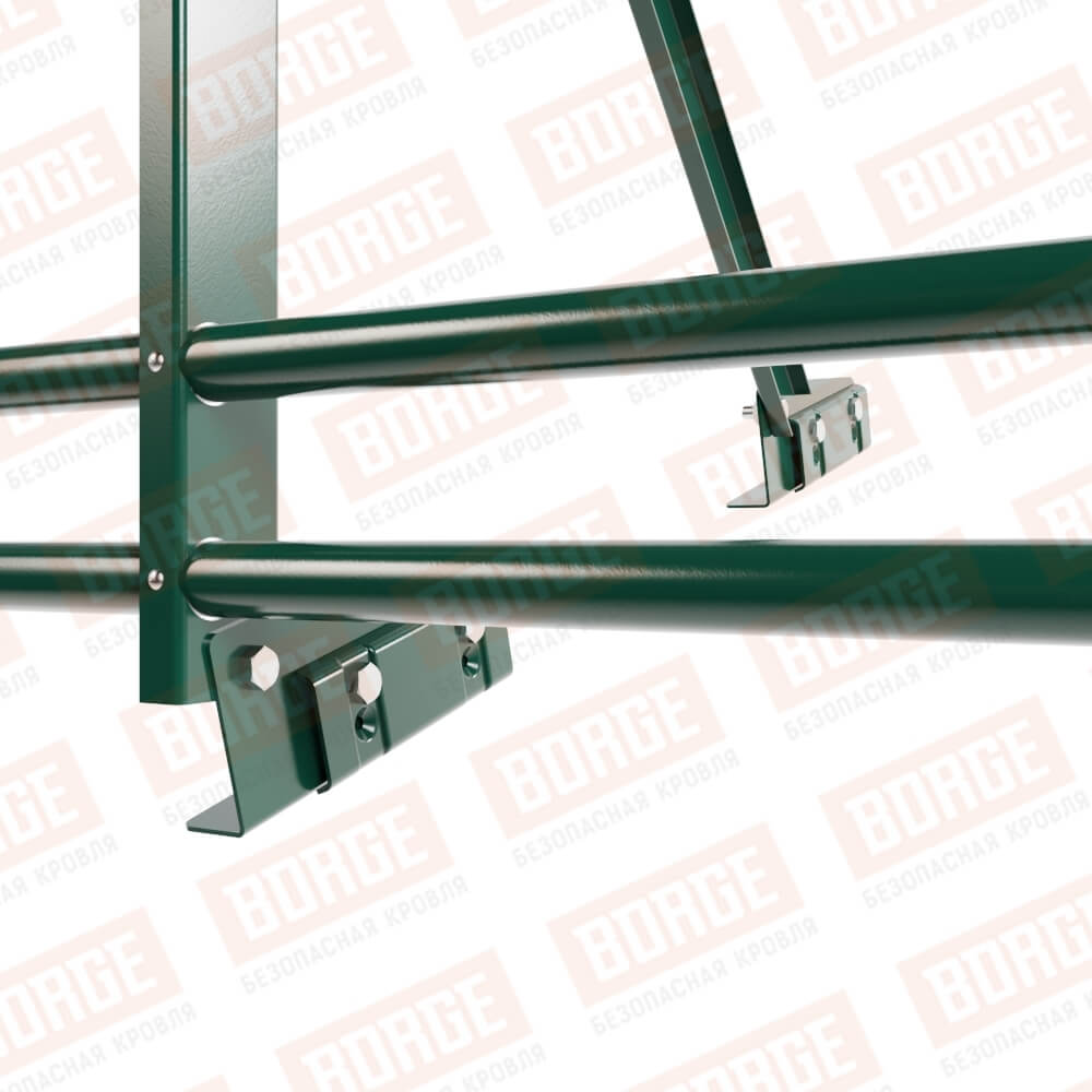 Ограждение кровельное Русский Рубеж H-90см, 3м, для фальцевой кровли, зеленый мох (RAL 6005), с двумя доп. трубами