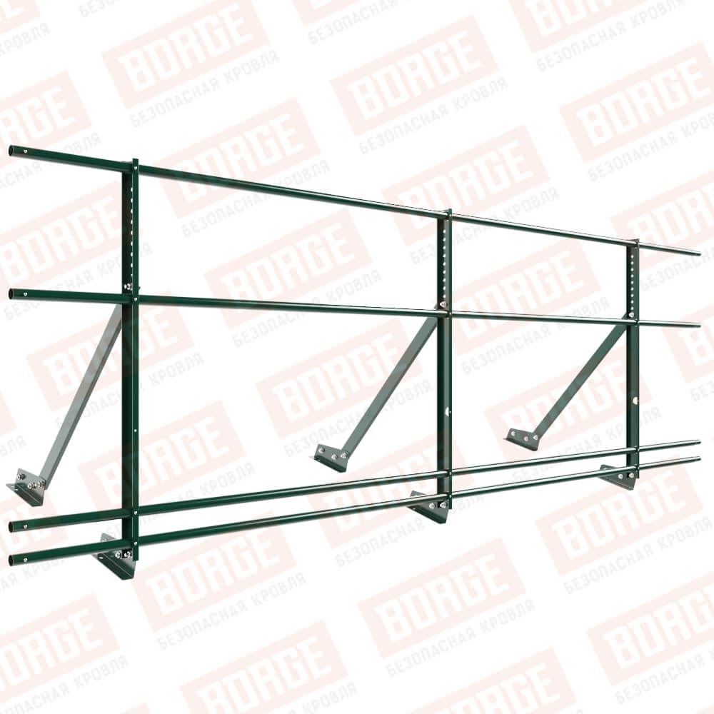 Ограждение кровельное Русский Рубеж H-90см, 3м, с двумя доп. трубами, для фальцевой кровли, зеленый мох (RAL 6005)