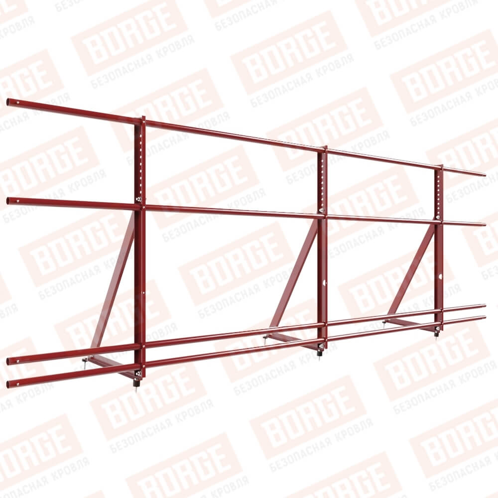 Ограждение кровельное Русский Рубеж H-90см, 3м, с двумя доп. трубами, для кровли из металлочерепицы, профнастила, материалов на основе битума, коричнево-красный (RAL 3011)