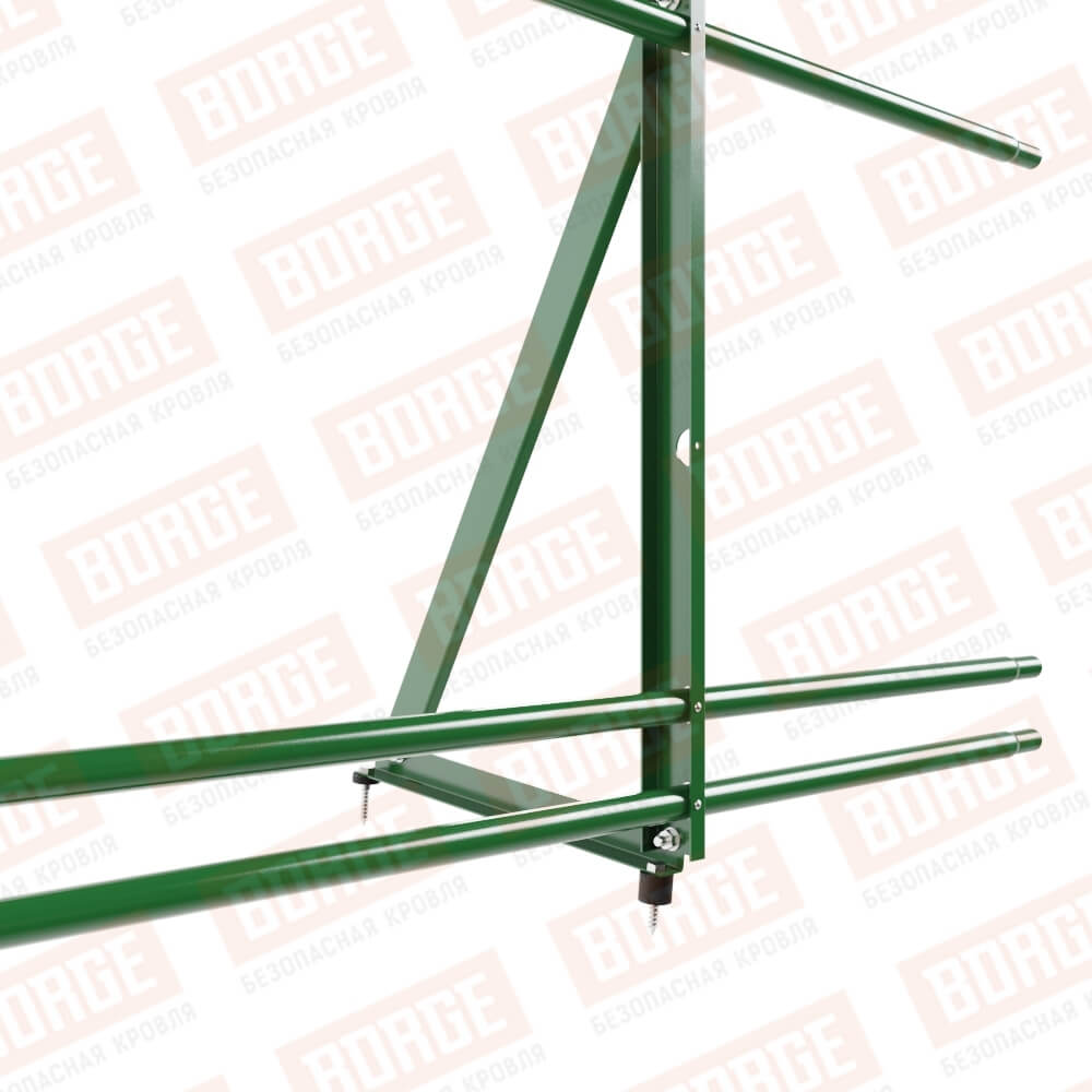 Ограждение кровельное Русский Рубеж H-90см, 3м, с двумя доп. трубами, для кровли из металлочерепицы, профнастила, материалов на основе битума, лиственно-зеленый (RAL 6002)