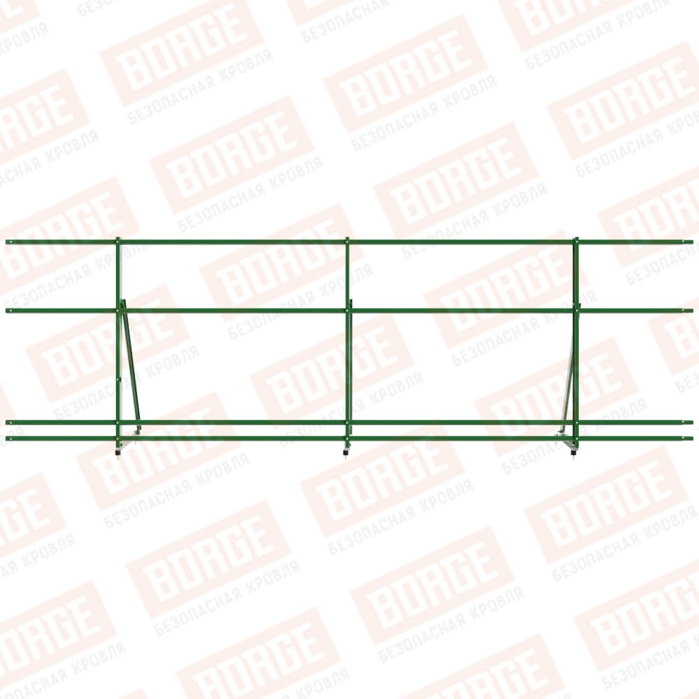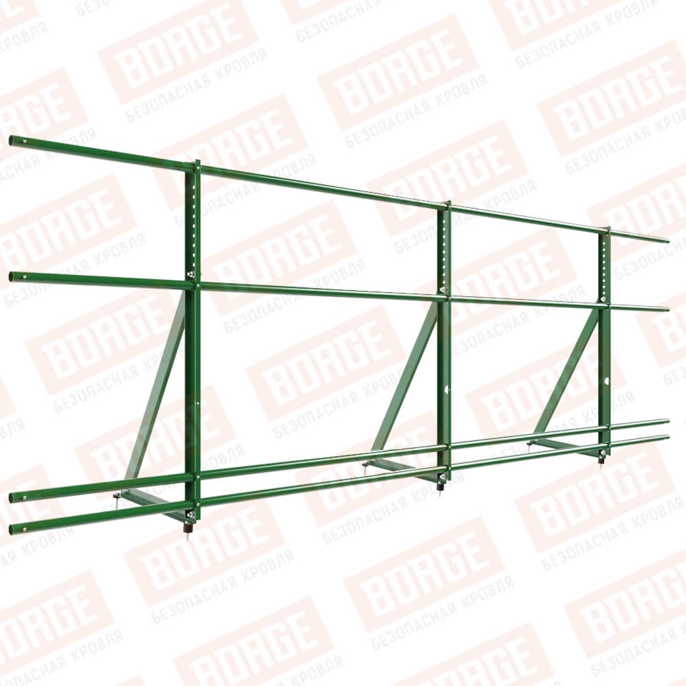 Ограждение кровельное Русский Рубеж H-90см, 3м, лиственно-зеленый (RAL 6002), с двумя доп. трубами