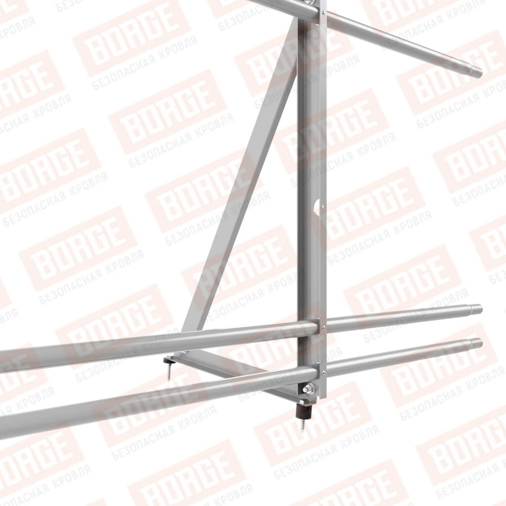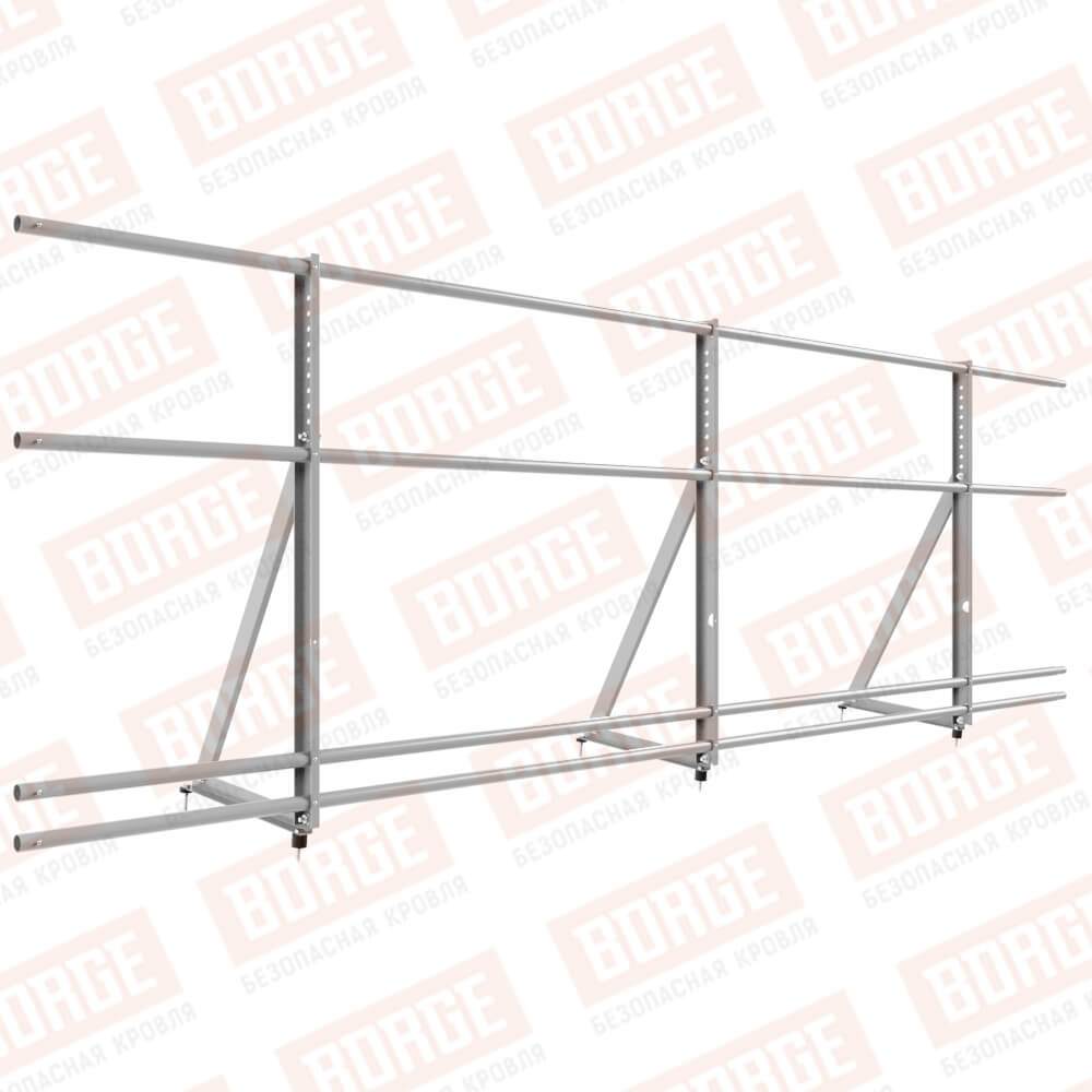 Ограждение кровельное Русский Рубеж H-90см, 3м, с двумя доп. трубами, для кровли из металлочерепицы, профнастила, материалов на основе битума, сигнально-серый (RAL 7004)