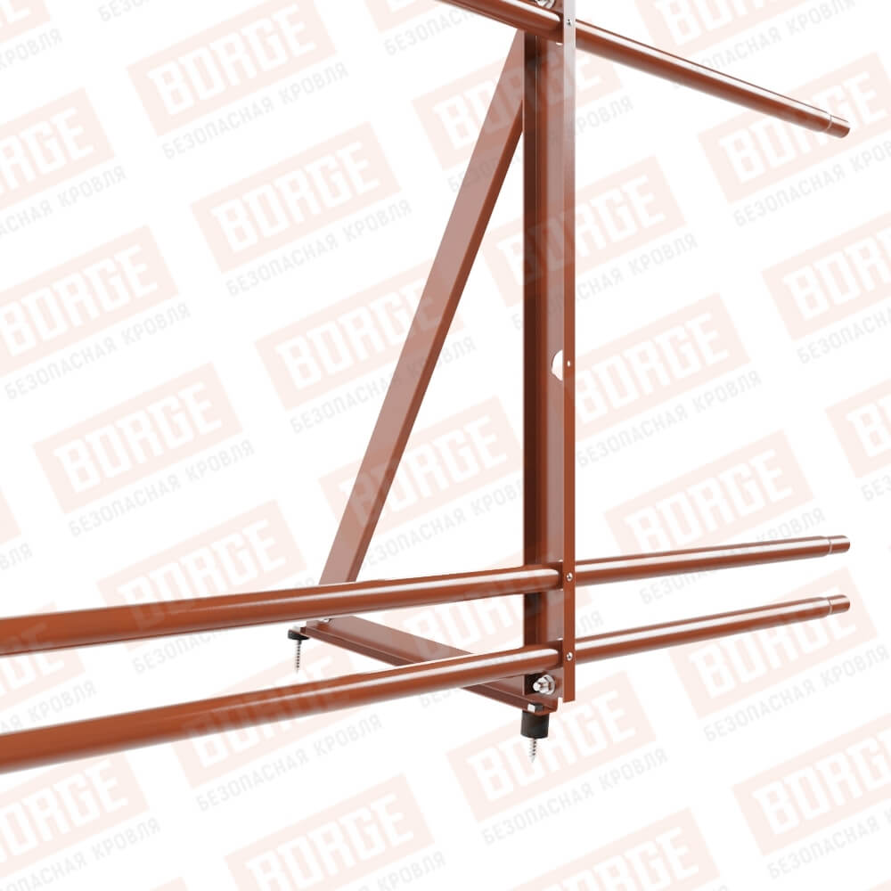 Ограждение кровельное Русский Рубеж H-90см, 3м, с двумя доп. трубами, для кровли из металлочерепицы, профнастила, материалов на основе битума, терракотовый (RAL 8004)