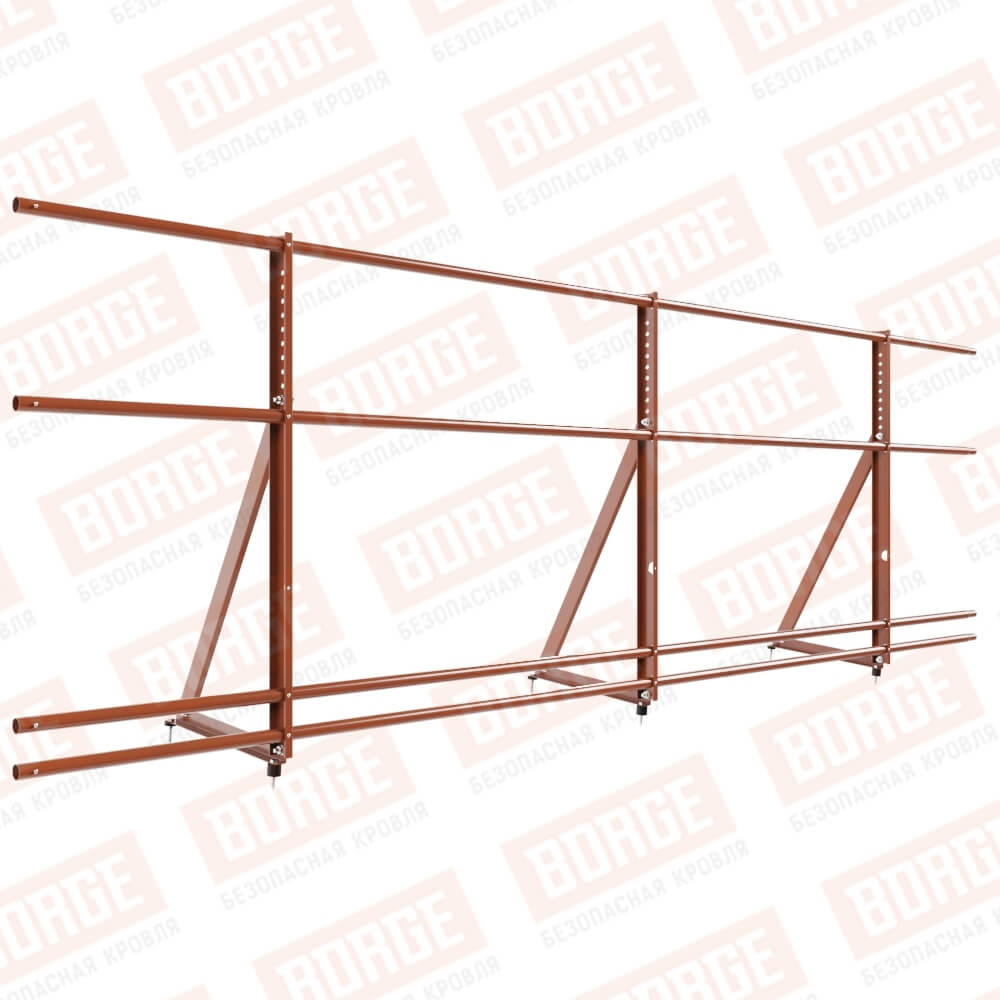Ограждение кровельное Русский Рубеж H-90см, 3м, терракотовый (RAL 8004), с двумя доп. трубами