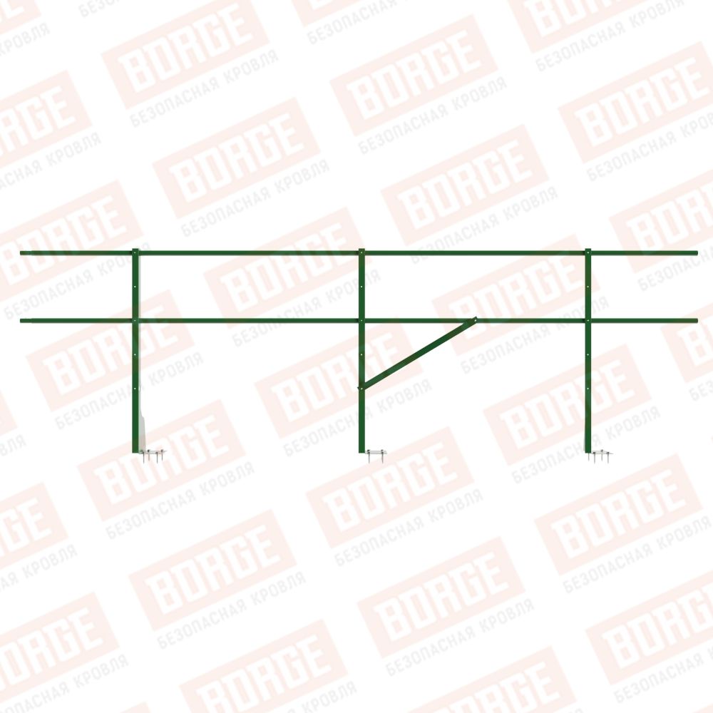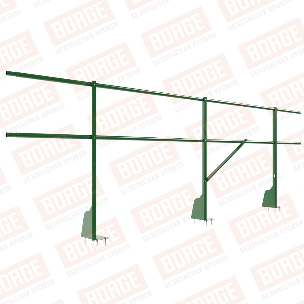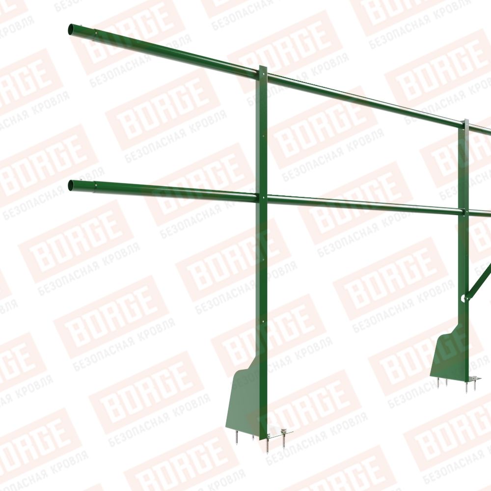 Ограждение плоских кровель Русский Рубеж Н-90, 3м, верхнее крепление, лиственно-зеленый (RAL 6002)