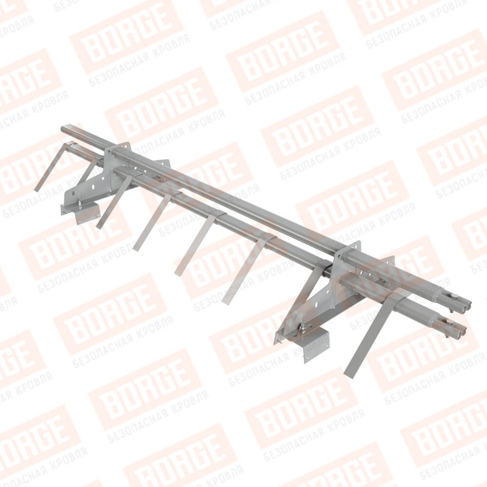 Снегозадержатель трубчатый BORGE 1,5м, 2 опоры, для профнастила Н-114, бело-алюминиевый (RAL 9006)