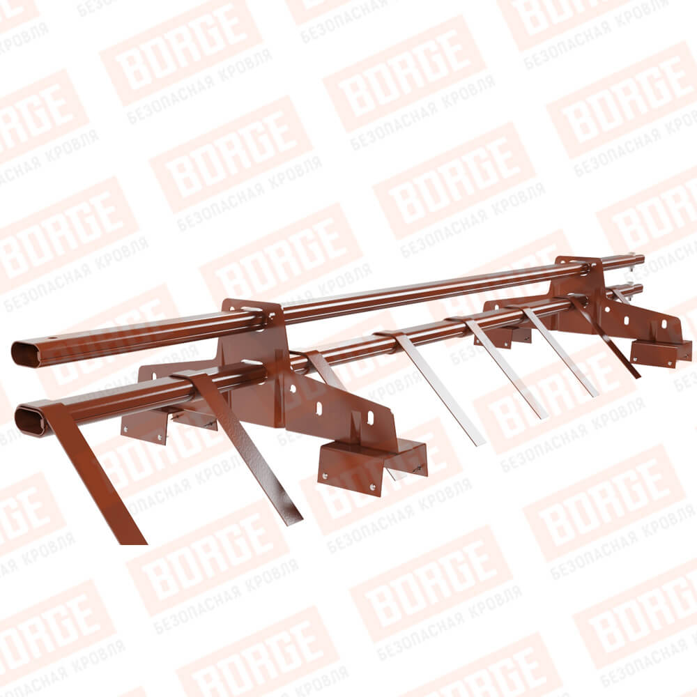 Снегозадержатель трубчатый BORGE 1,5м, 2 опоры, для профнастила Н-114, терракотовый (RAL 8004)