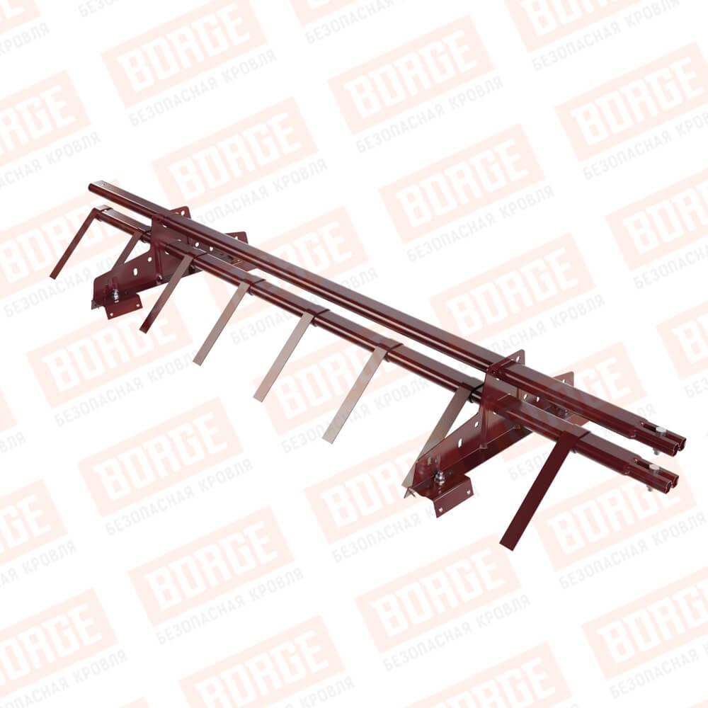 Снегозадержатель трубчатый BORGE 1,5м, 2 опоры, для профнастила Н-60, Н-75, красное вино (RAL 3005)