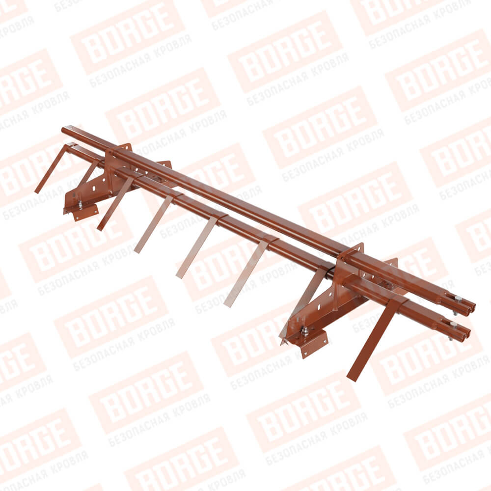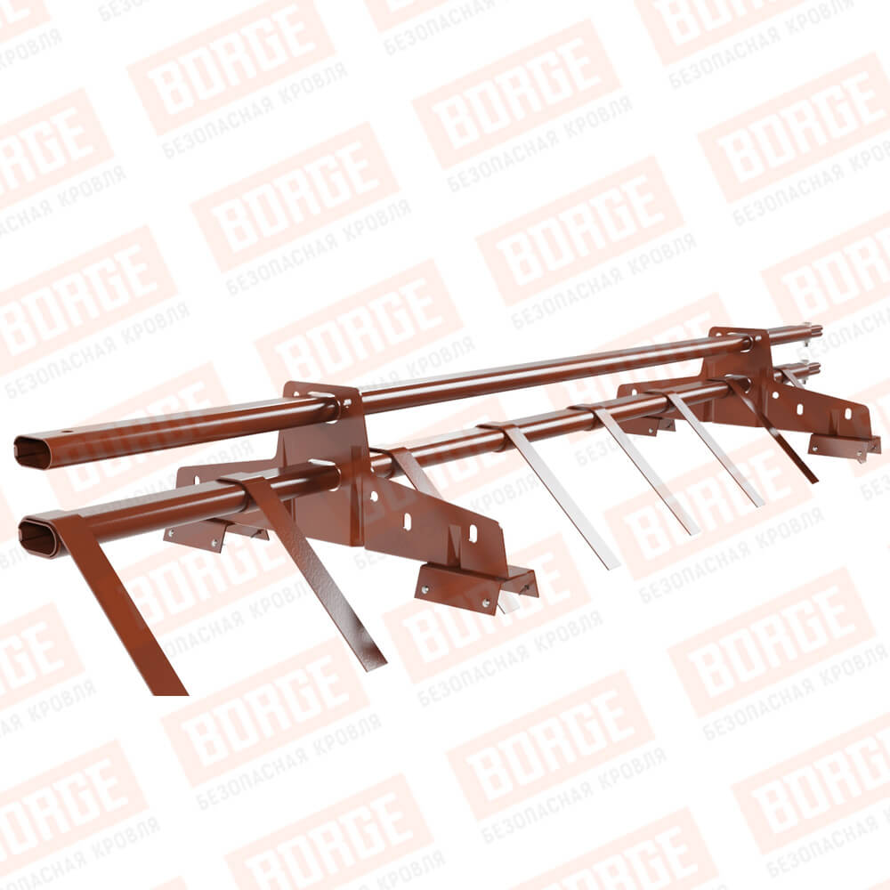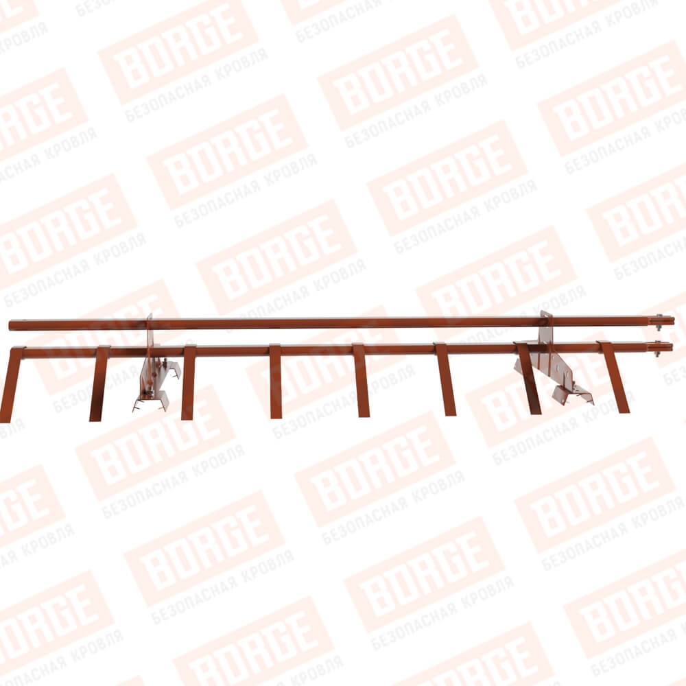 Снегозадержатель трубчатый BORGE 1,5м, 2 опоры, для профнастила Н-60, Н-75, терракотовый (RAL 8004)