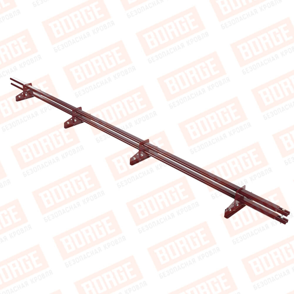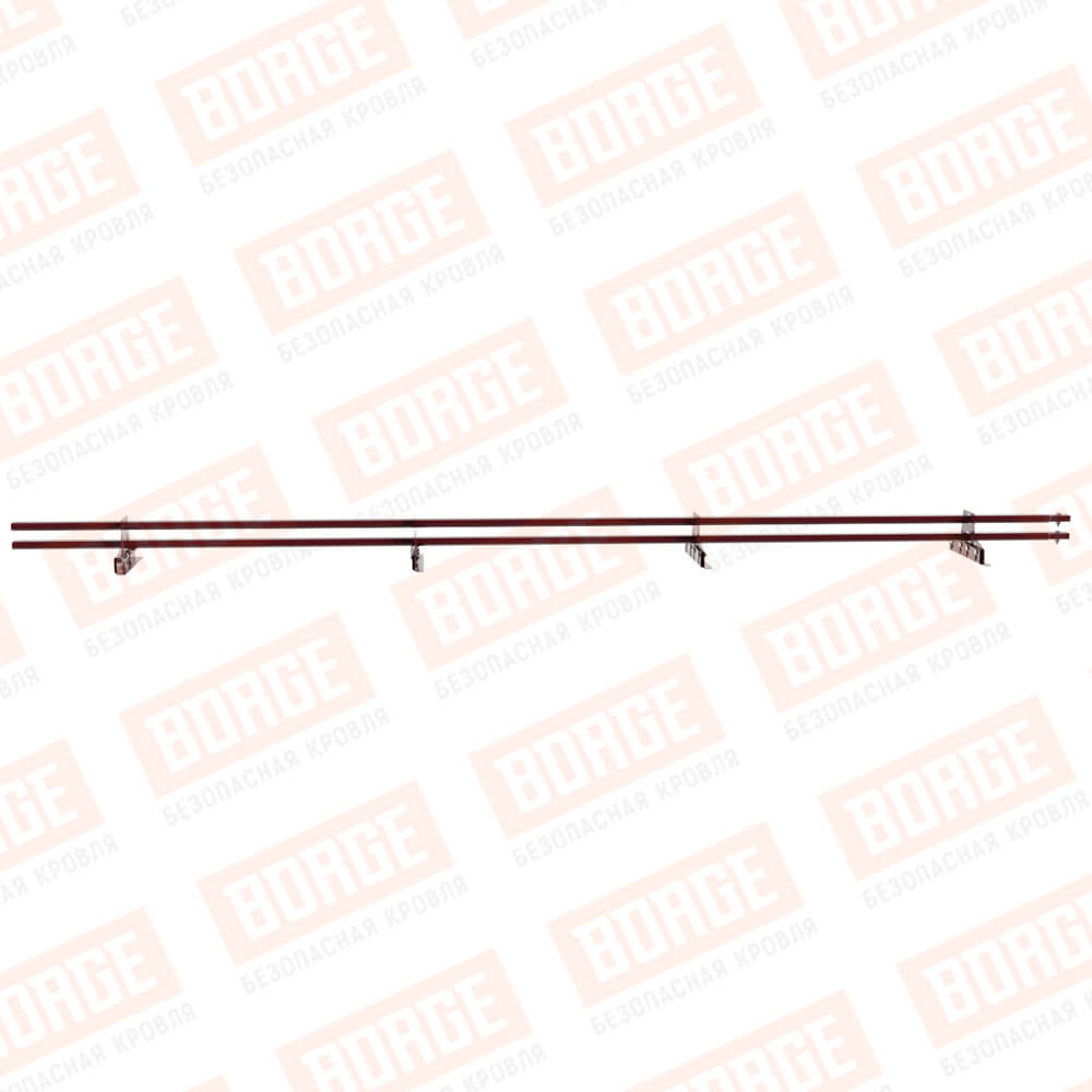 Снегозадержатель трубчатый BORGE 3м, 4 опоры, для фальцевой кровли, красное вино (RAL 3005)