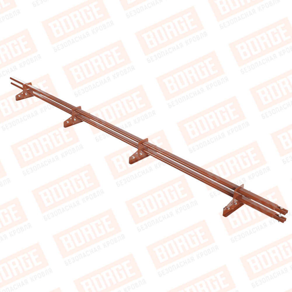 Снегозадержатель трубчатый BORGE 3м, 4 опоры, для фальцевой кровли, терракотовый (RAL 8004)