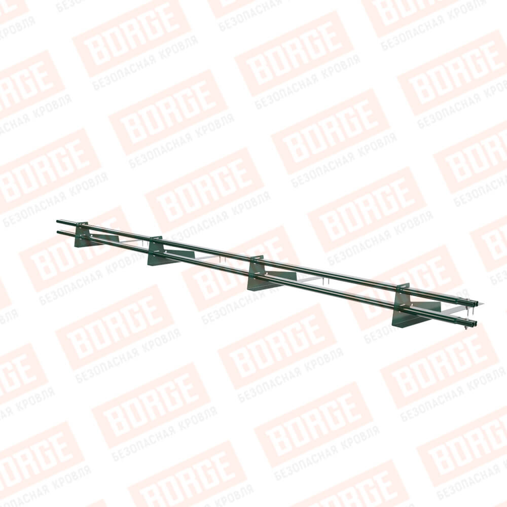 Снегозадержатель трубчатый BORGE 3м, 4 опоры, для гибкой черепицы, зеленый мох (RAL 6005)