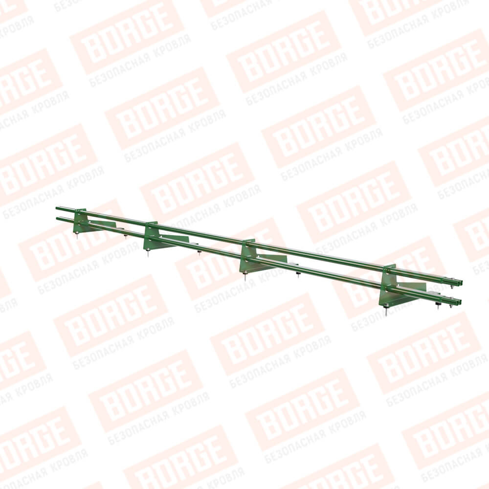 Снегозадержатель трубчатый BORGE 3м, 4 опоры, для МЧ с выс. ступен., лиственно-зеленый (RAL 6002), 350мм