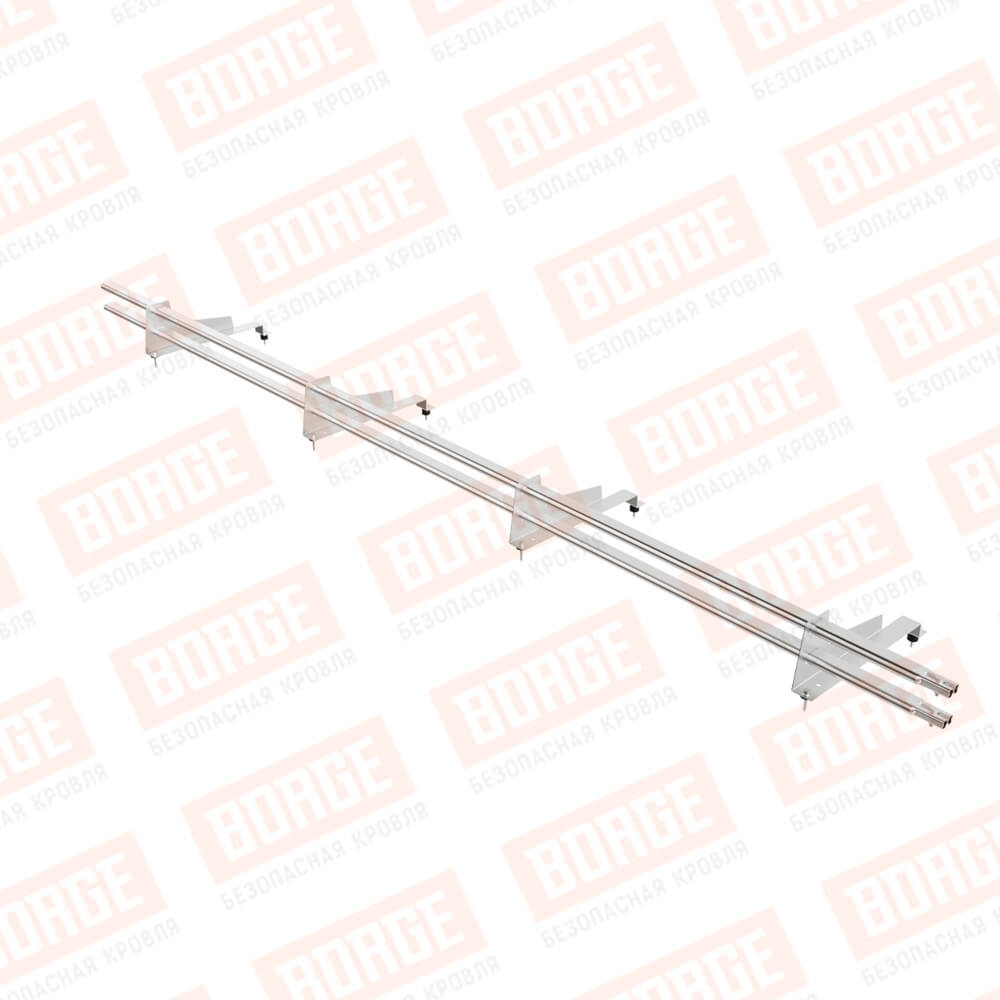 Снегозадержатель трубчатый BORGE 3м, 4 опоры, для МЧ с высокой ступенькой, цинк, 400мм