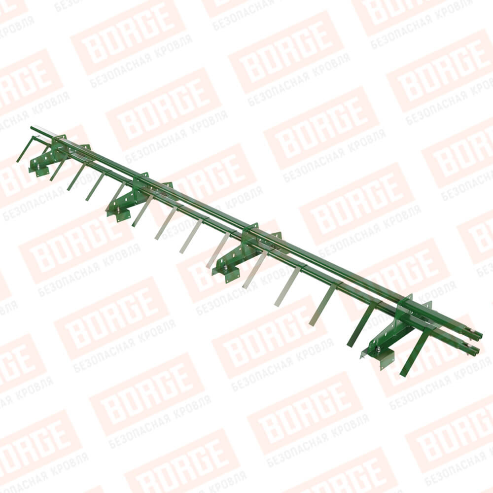 Снегозадержатель трубчатый BORGE 3м, 4 опоры, для профнастила Н-114, лиственно-зеленый (RAL 6002)