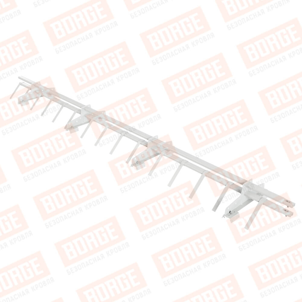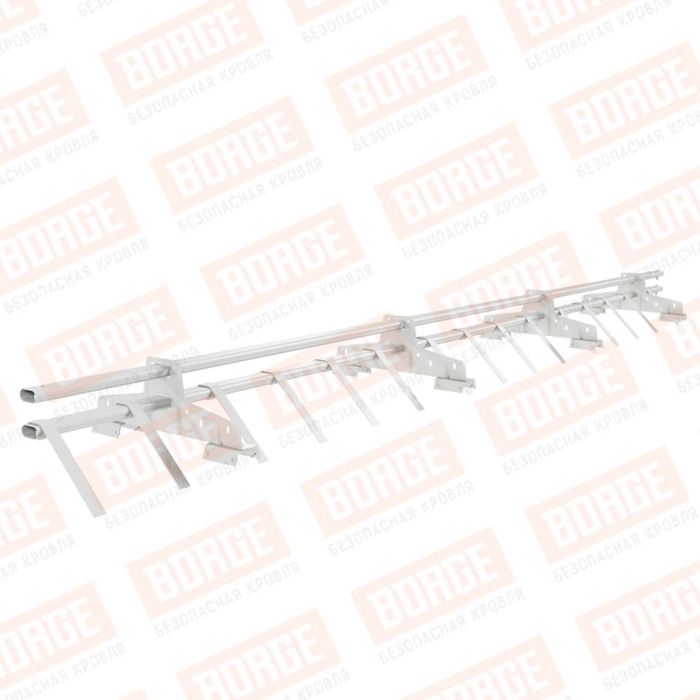 Снегозадержатель трубчатый BORGE 3м, 4 опоры, для профнастила Н-60, Н-75, сигнально-белый (RAL 9003)