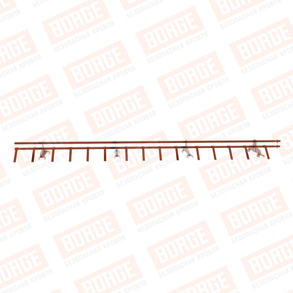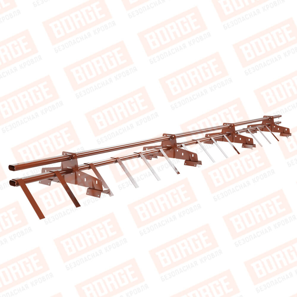 Снегозадержатель трубчатый BORGE 3м, 4 опоры, для профнастила Н-60, Н-75, терракотовый (RAL 8004)