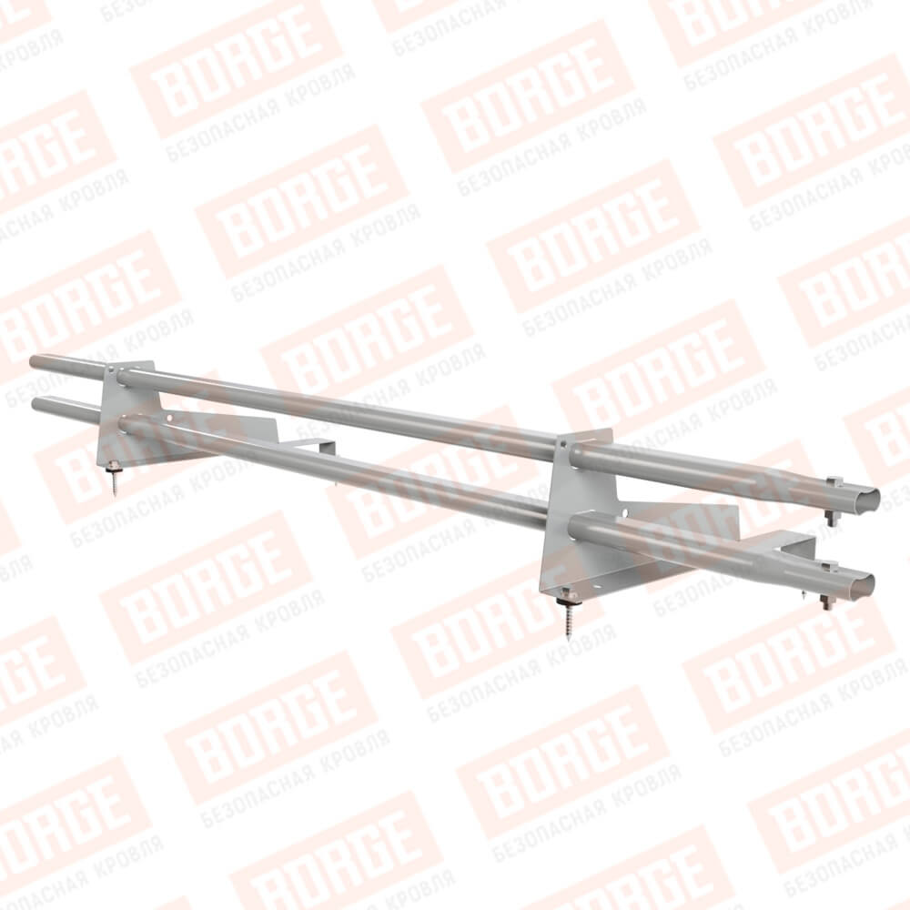 Снегозадержатель трубчатый Русский Рубеж 1,5м, 2 опоры, для МЧ с выс. ступ., бело-алюминиевый (RAL 9006), 400мм