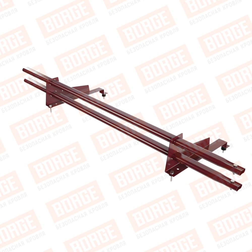 Снегозадержатель трубчатый Русский Рубеж 1,5м, 2 опоры, для МЧ с выс. ступ., красное вино (RAL 3005), 400мм