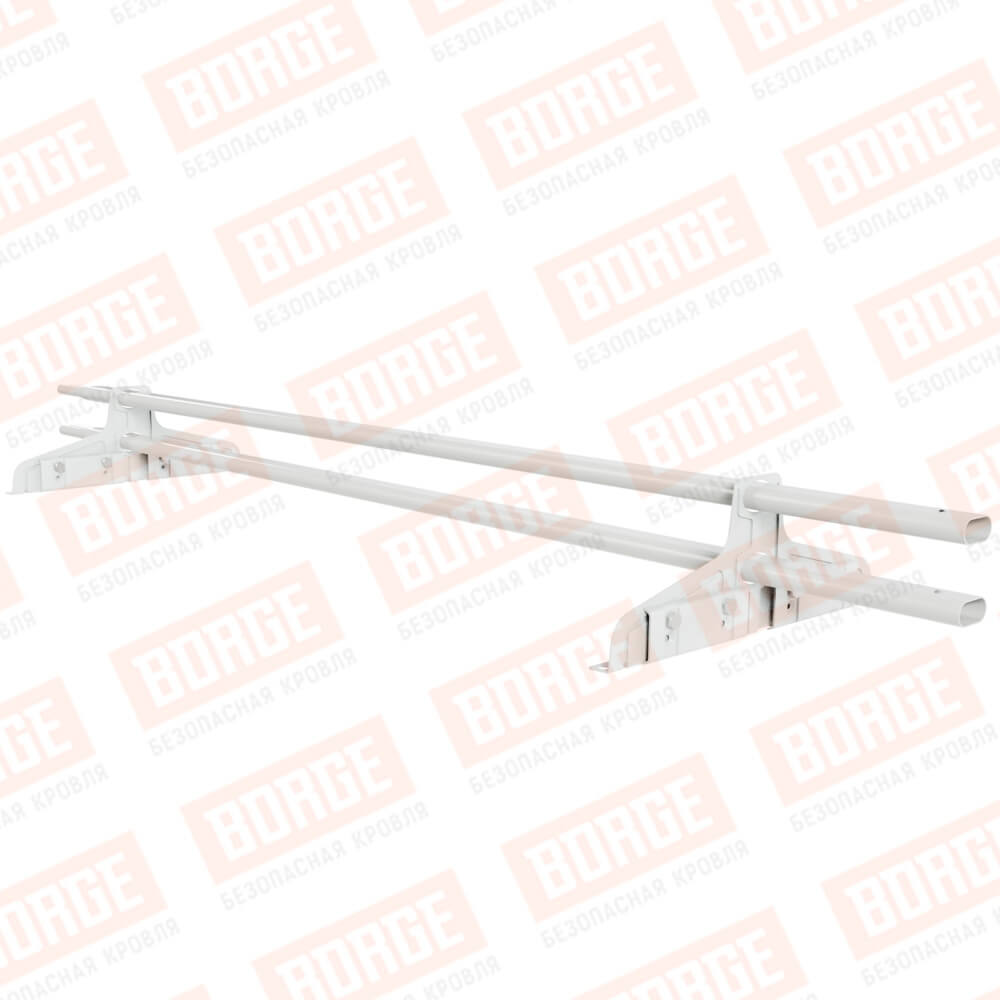 Снегозадержатель трубчатый Русский Рубеж 20х40мм, 1,5м, 2 опоры, для фальц. кровли, сигнально-белый (RAL 9003)