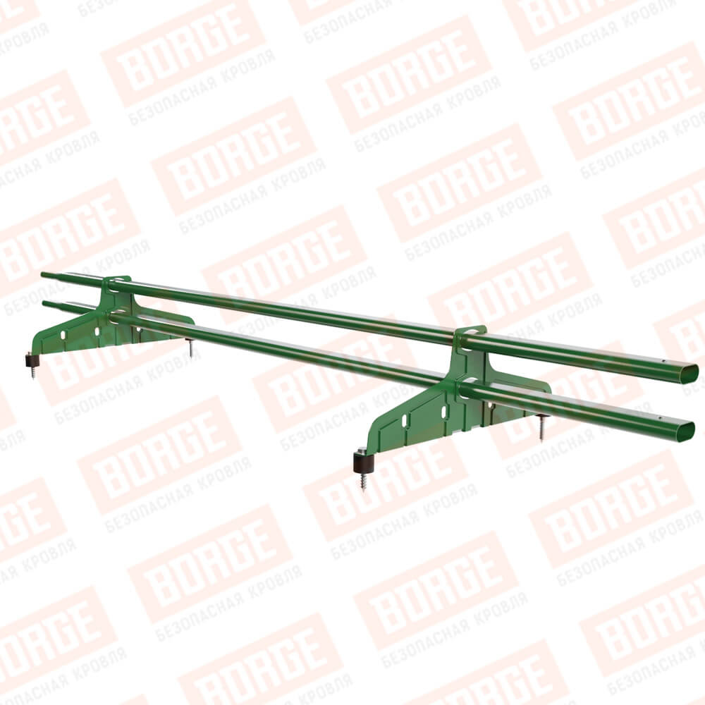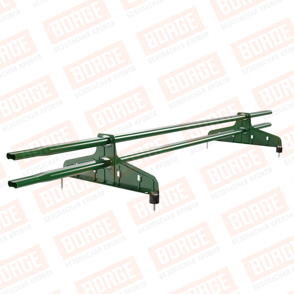Снегозадержатель трубчатый Русский Рубеж 20х40мм, 1,5м, 2 опоры, лиственно-зеленый (RAL 6002)