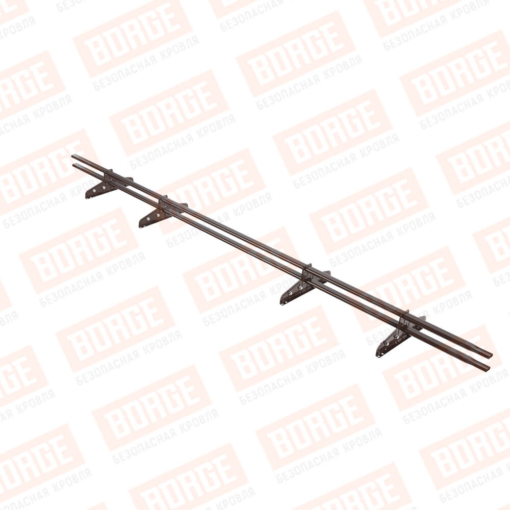Снегозадержатель трубчатый Русский Рубеж 20х40мм, 3м, 4 опоры, для фальц. кровли, коричневый шоколад (RAL 8017)