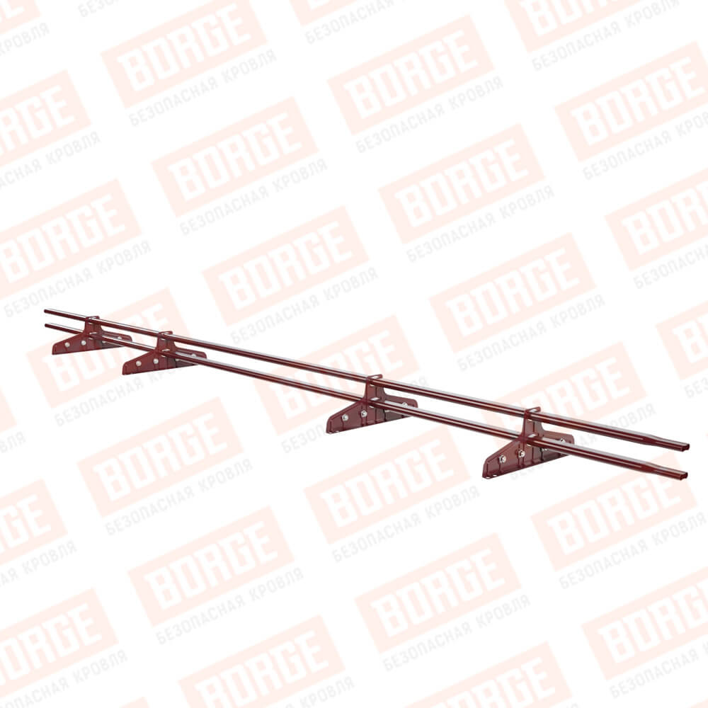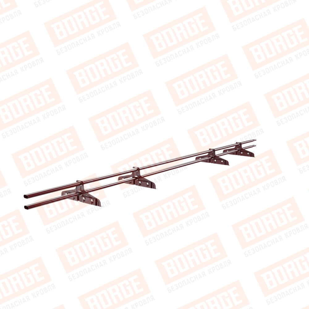 Снегозадержатель трубчатый Русский Рубеж 20х40мм, 3м, 4 опоры, для фальц. кровли, красное вино (RAL 3005)