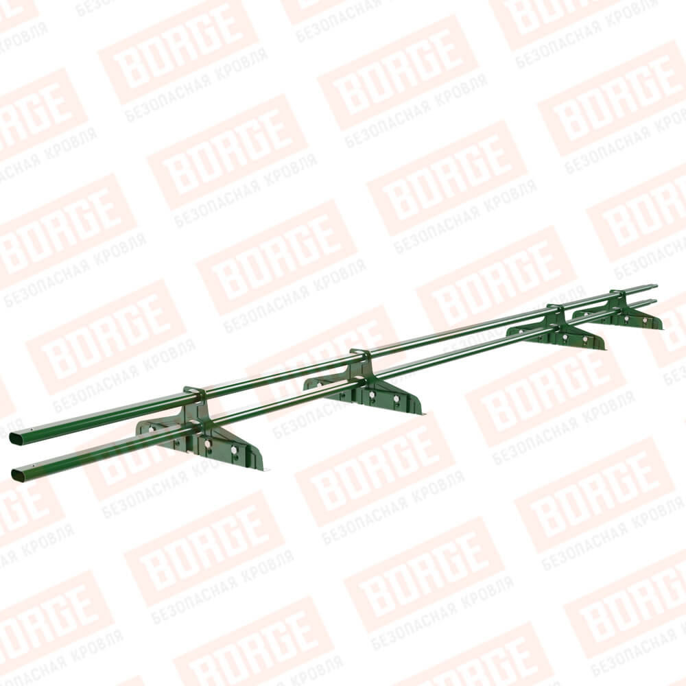 Снегозадержатель трубчатый Русский Рубеж 20х40мм, 3м, 4 опоры, для фальц. кровли, лиственно-зеленый (RAL 6002)