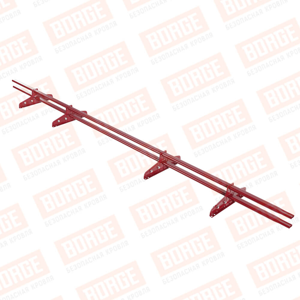 Снегозадержатель трубчатый Русский Рубеж 20х40мм, 3м, 4 опоры, для фальц. кровли, рубиново-красный (RAL 3003)