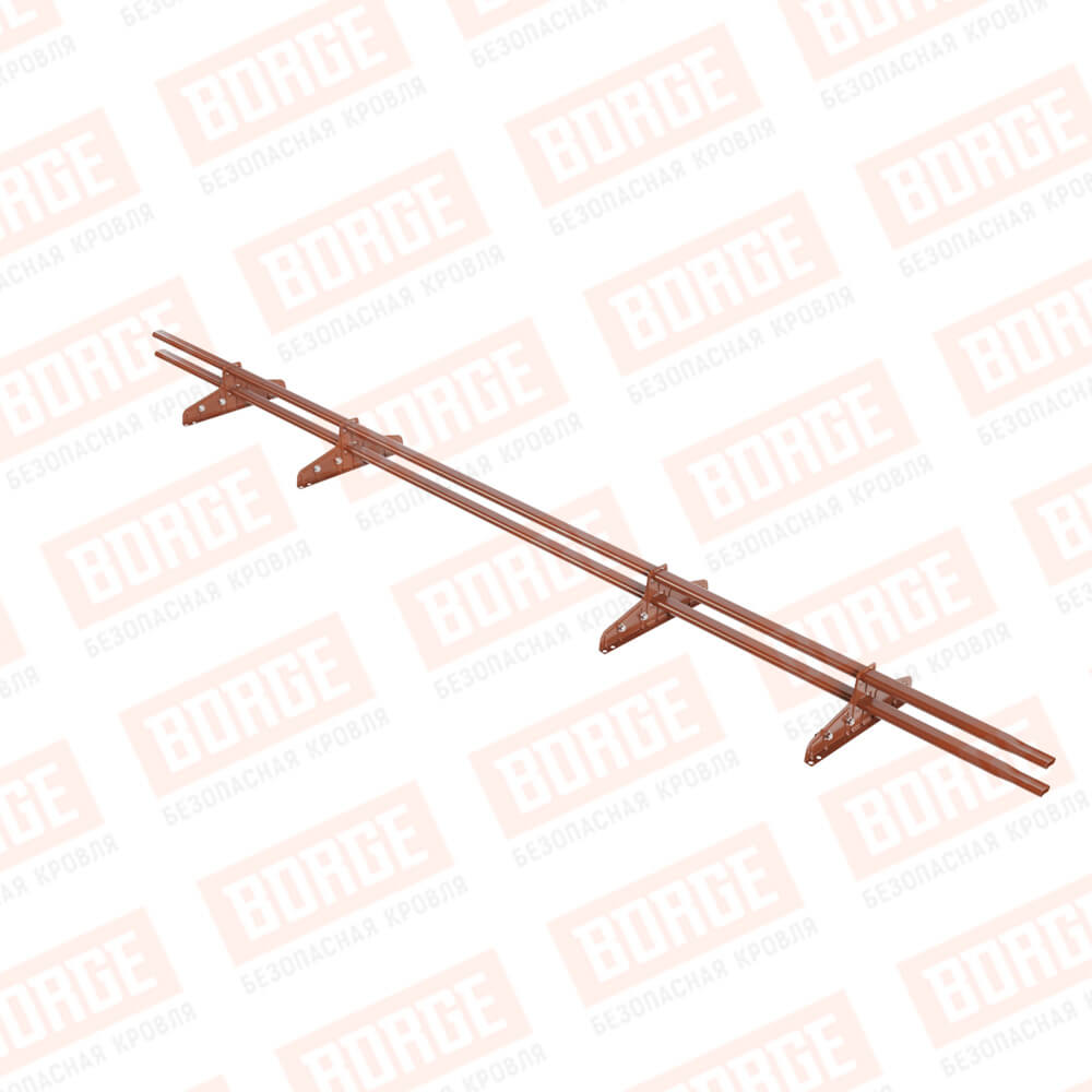 Снегозадержатель трубчатый Русский Рубеж 20х40мм, 3м, 4 опоры, для фальц. кровли, терракотовый (RAL 8004)