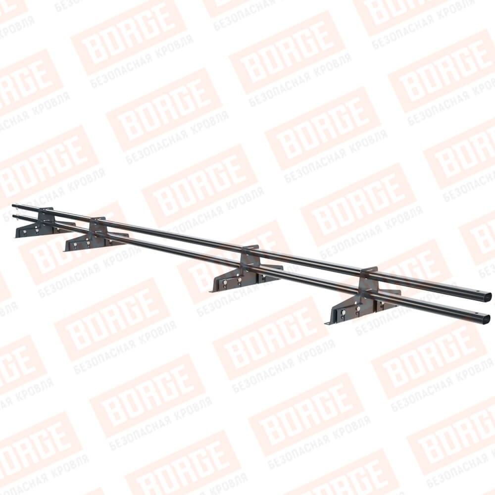 Снегозадержатель трубчатый Русский Рубеж 25х45мм, 3м, 4 опоры, для фальц. кровли, антрацитово-серый (RAL 7016)