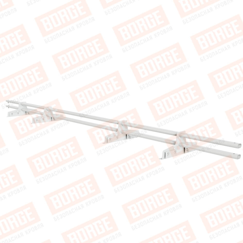 Снегозадержатель трубчатый Русский Рубеж 25х45мм, 3м, 4 опоры, для фальц. кровли, сигнально-белый (RAL 9003)