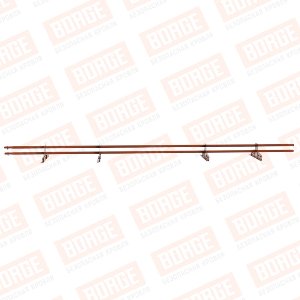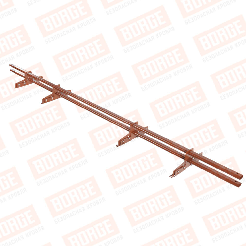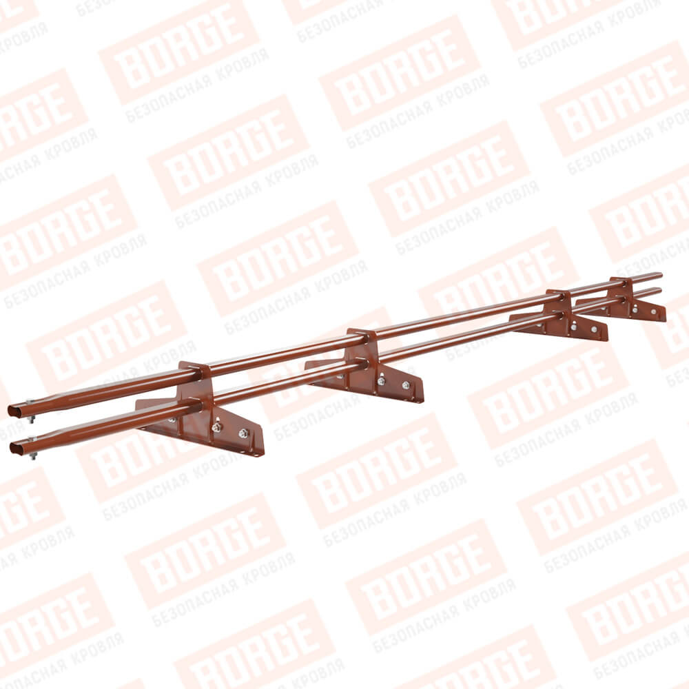 Снегозадержатель трубчатый Русский Рубеж 25х45мм, 3м, 4 опоры, для фальц. кровли, терракотовый (RAL 8004)