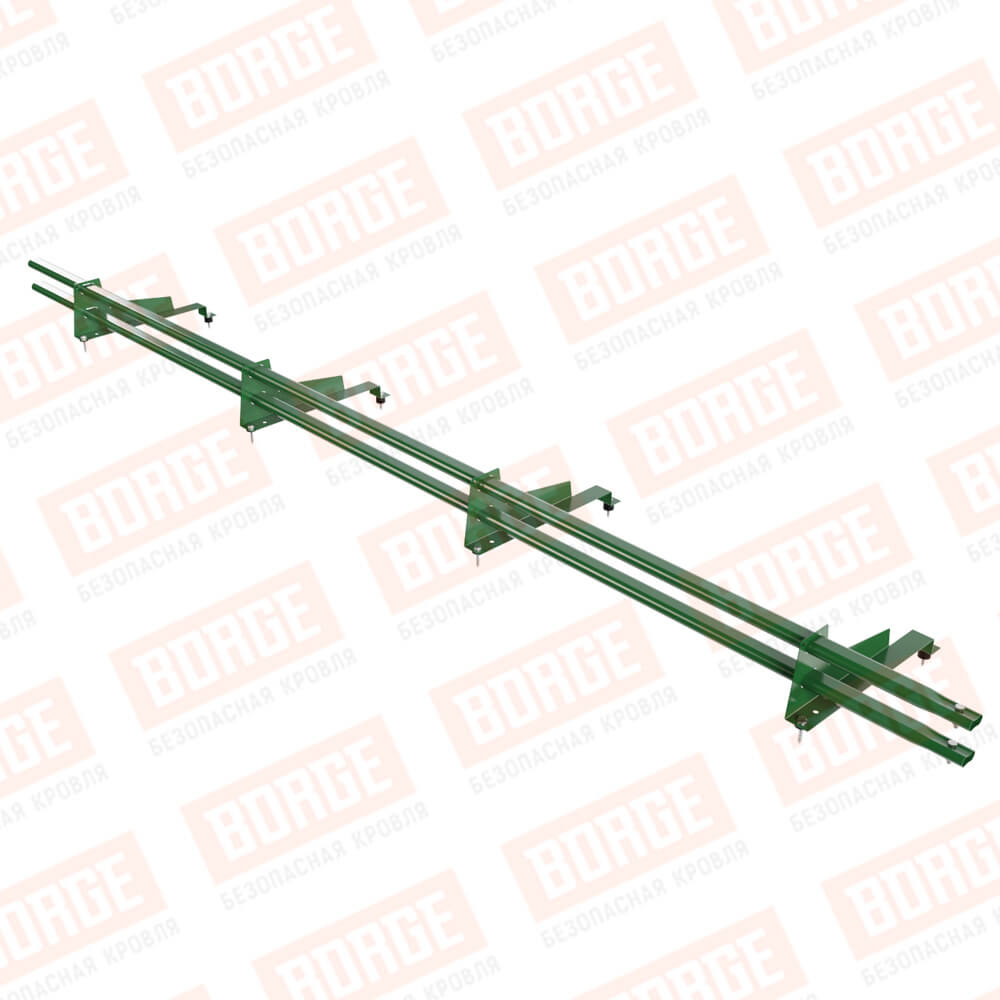 Снегозадержатель трубчатый Русский Рубеж 3м, 4 опоры, для МЧ с выс. ступенькой, лиственно-зеленый (RAL 6002), 400мм