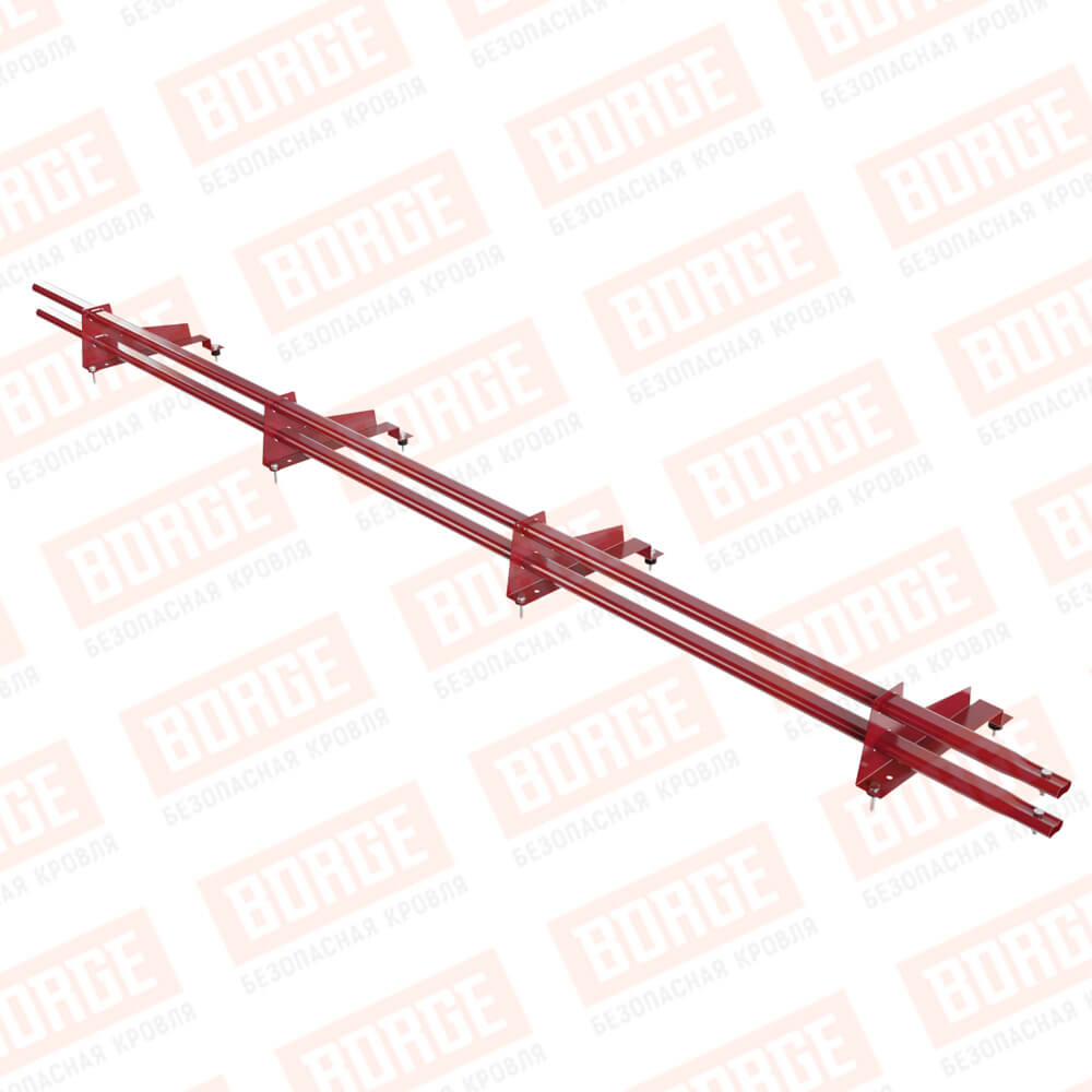 Снегозадержатель трубчатый Русский Рубеж 3м, 4 опоры, для МЧ с выс. ступенькой, рубиново-красный (RAL 3003), 350мм
