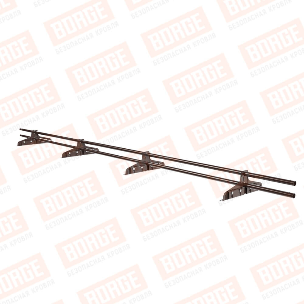 Снегозадержатель трубчатый Русский Рубеж D-25мм, 3м, 4 опоры, для фальц. кровли, коричневый шоколад (RAL 8017)