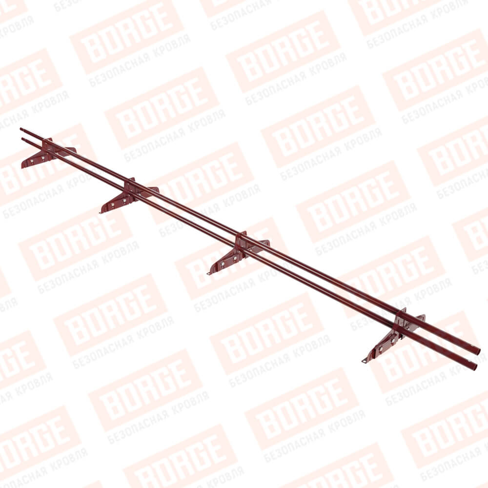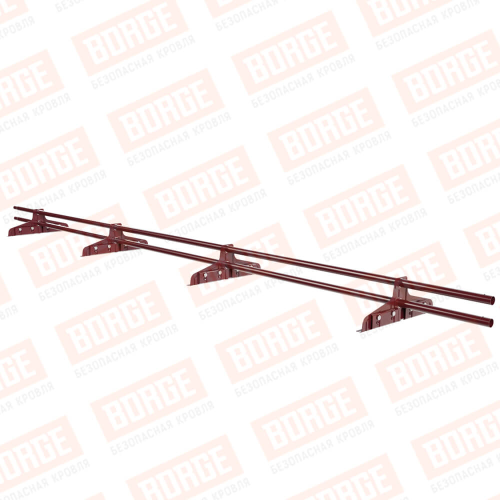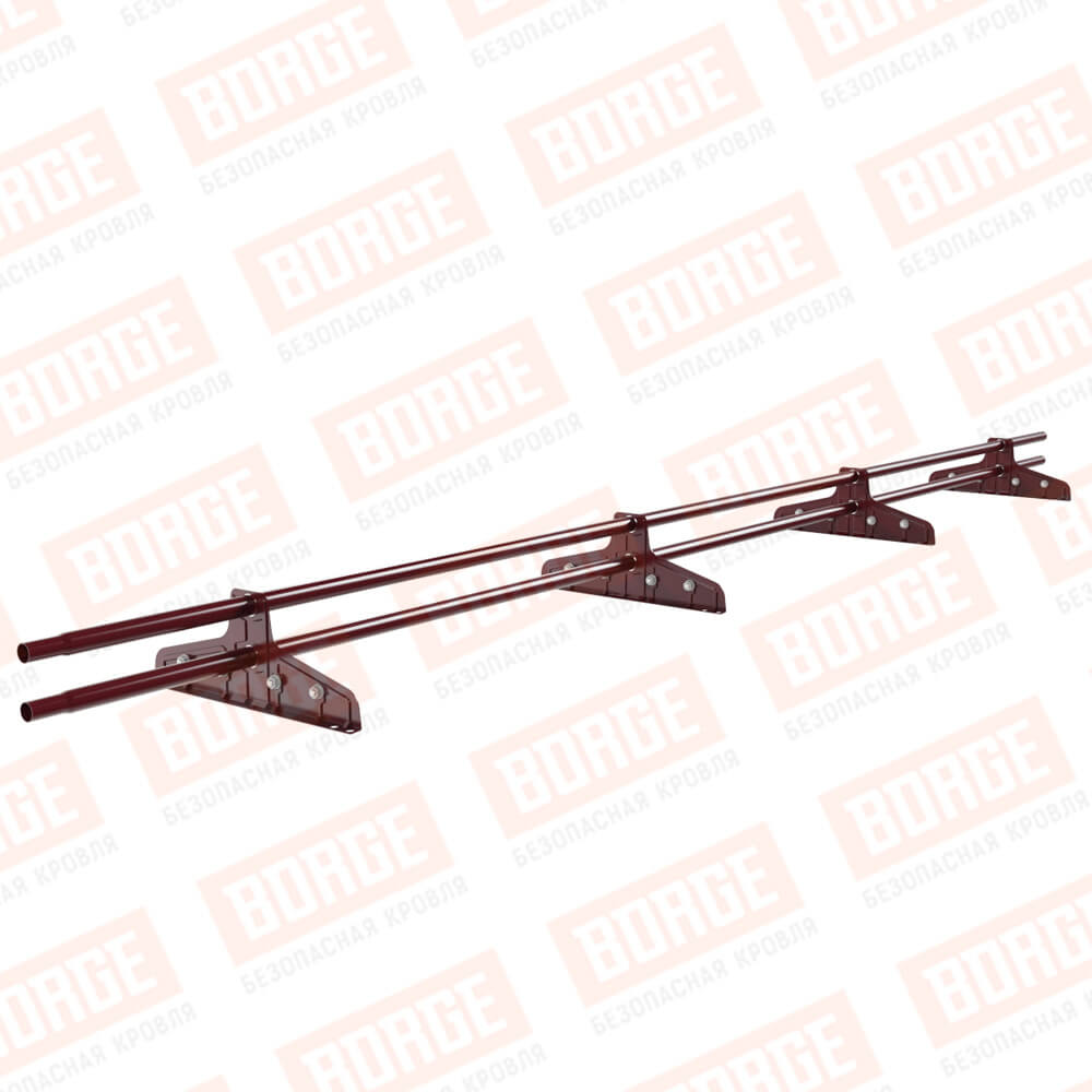 Снегозадержатель трубчатый Русский Рубеж D-25мм, 3м, 4 опоры, для фальц. кровли, красное вино (RAL 3005)