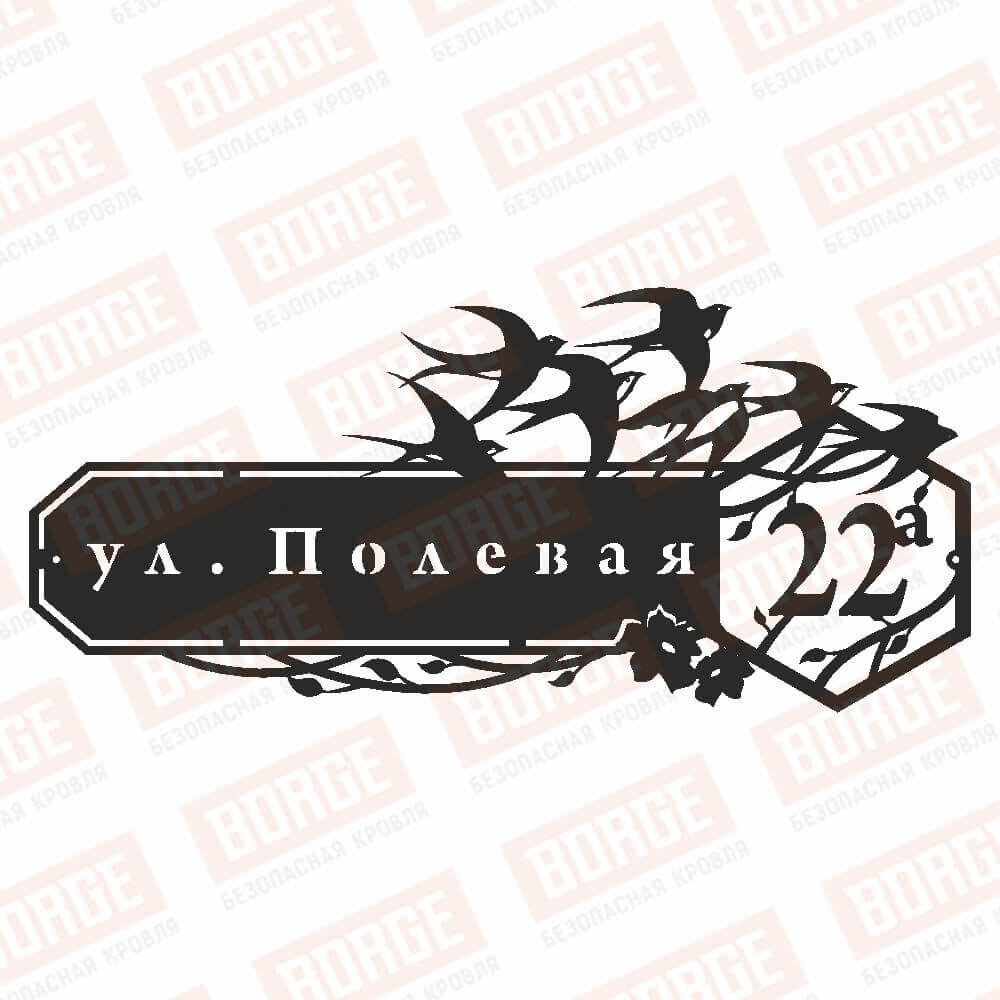 Табличка адресная BORGE Ласточки, 1000x451мм, коричневый шоколад (RAL 8017 matt)