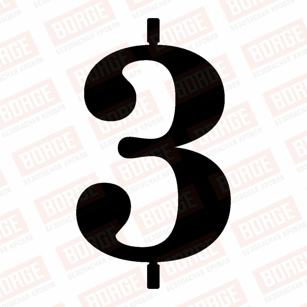 Цифра для номерного знака BORGE "3", 92х130мм, чёрный (RAL 9005)